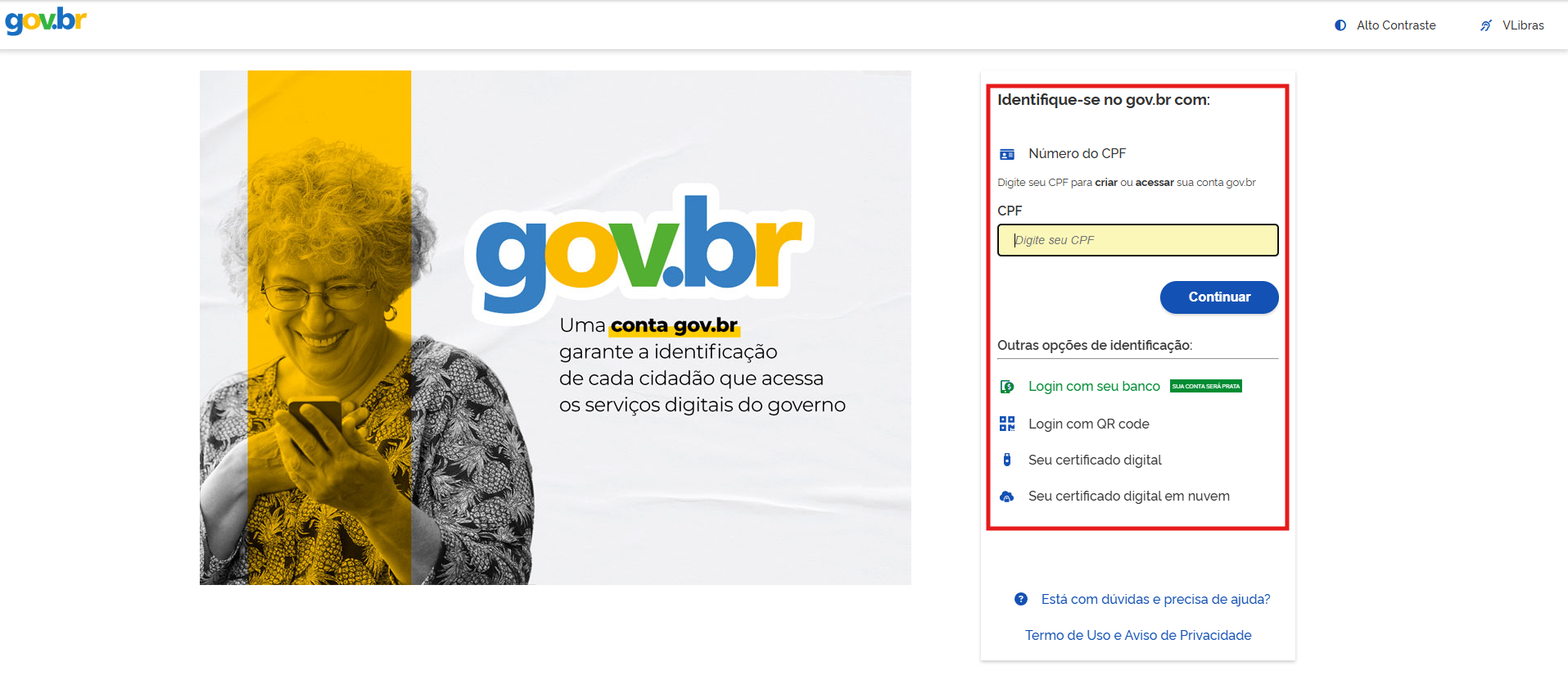 Na página seguinte, selecione o perfil “Governo” e clique em “Entrar com Gov.br”.