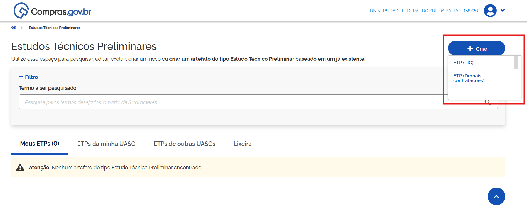 Criação do Estudo Técnico Preliminar