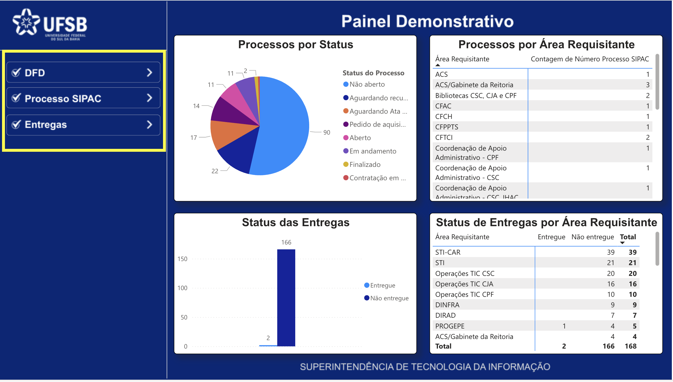 Esta aba traz os dados das demandas registradas pelas unidades da UFSB no Plano de Contratações Anuais (PCA), antes da abertura de processo formal no SIPAC.
