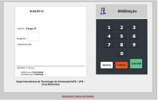 Obs.: Para abandonar a cabine de votação, clique em "Abandonar cabine de votação", na parte inferior da urna.