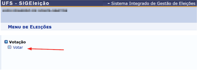 Na página inicial do SIGEleição, é exibido o Menu de Eleições, que contém uma seção com a opção Votar, conforme indicado a seguir.